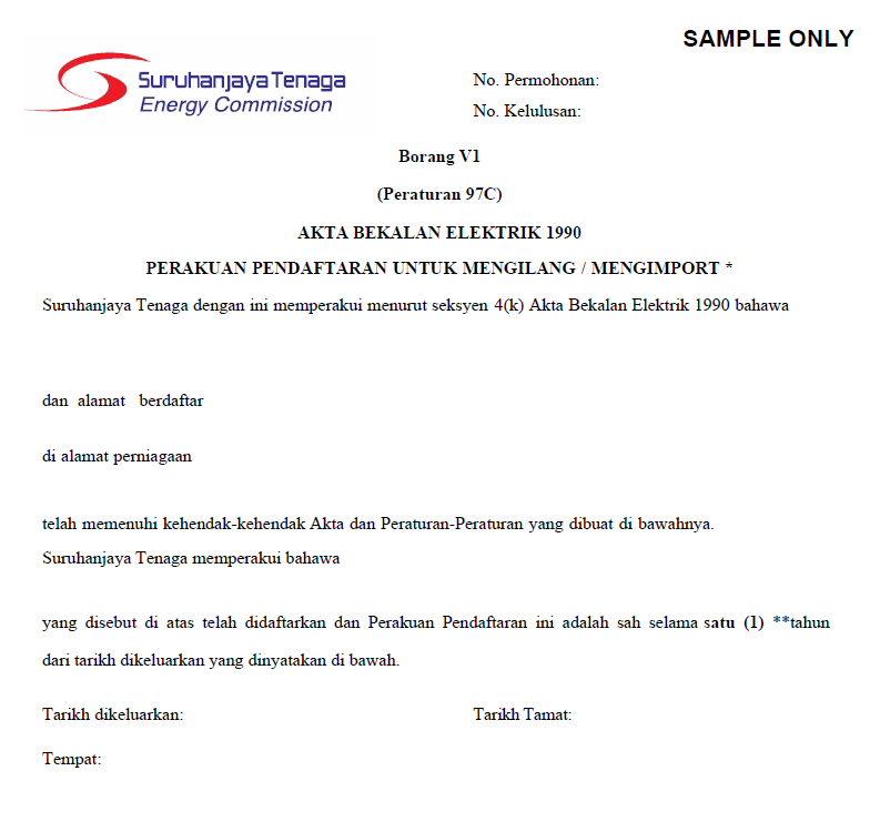 Mendapat Sijil Perakuan Kelulusan dari Suruhanjaya Tenaga